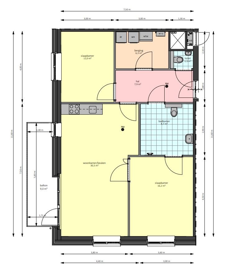 Deze moderne nieuwbouwwoning op de derde verdieping heeft een ruime rolstoeldoorgankelijke woonkamer met open keuken (30,5 m2), een centrale hal, badkamer met douche en toilet, twee slaapkamers (van 16 en 12 m2), een apart gastentoilet en een inpandige berging met daarin ook installaties. De woning heeft een ruim balkon. De woning heeft daarnaast een extra berging op de begane grond in de centrale ruimte van het appartementencomplex.
