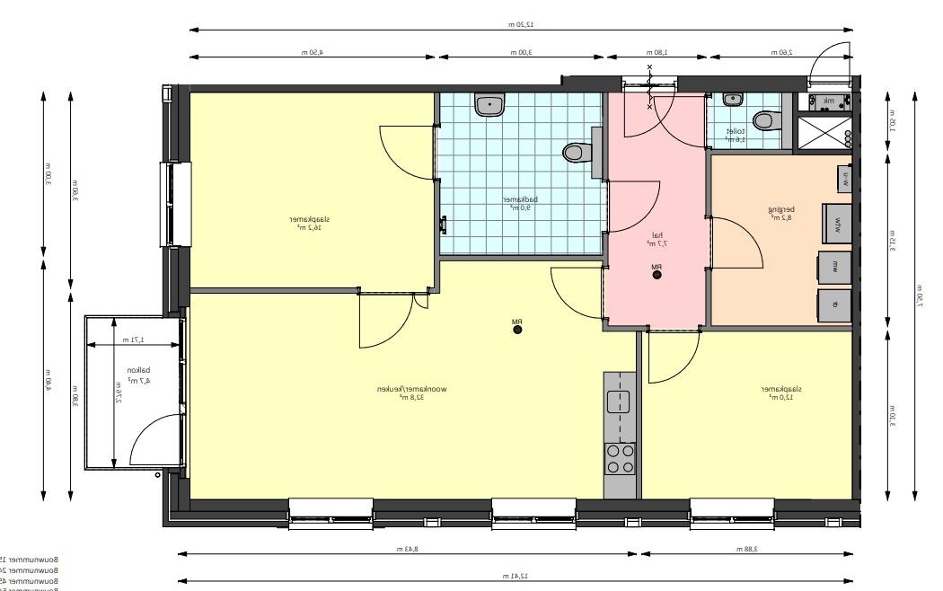 Deze moderne nieuwbouwwoning op de tweede verdieping heeft een ruime rolstoeldoorgankelijke woonkamer met open keuken (32,8 m2), een centrale hal, badkamer met douche en toilet, twee slaapkamers (van 16 en 12 m2), een apart gastentoilet en een inpandige berging met daarin ook installaties. De woning heeft een ruim balkon. De woning heeft daarnaast een extra berging op de begane grond in de centrale ruimte van het appartementencomplex.