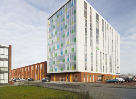 ![]()  Groningen PaddepoelFokus Groningen Paddepoel bestaat uit vijftien woningen met drie kamers. Aan het bestaande project zijn in 2011 drie nieuwbouwwoningen toegevoegd, gelegen in het appartementencomplex De Sirius. De andere woningen liggen aan de rustige kant van het gebouw, met uitzicht op een vijver en park. Drie appartementen op de begane grond hebben een tuin, de andere appartementen hebben een balkon. Tegenover het project is de ingang van één van de grootste overdekte winkelcentra van Noord-Nederland. Het Noorderplantsoen ligt op ongeveer 5 minuten afstand. De wijk is goed bereikbaar per openbaar vervoer, er is een bushalte voor de deur en NS-station Groningen Noord ligt op een kleine tien minuten reisafstand. De Zernike campus van de Hanzehogeschool en de Rijksuniversiteit Groningen grenzen aan de wijk en zijn goed bereikbaar. Bekijk het project
